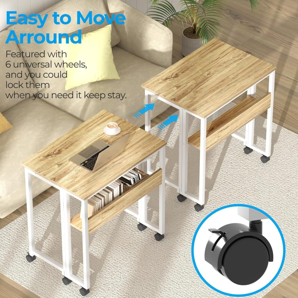 Computer Rolling Desk on Wheels Easy Assembly ,Foldable desk for Small Space, Oak